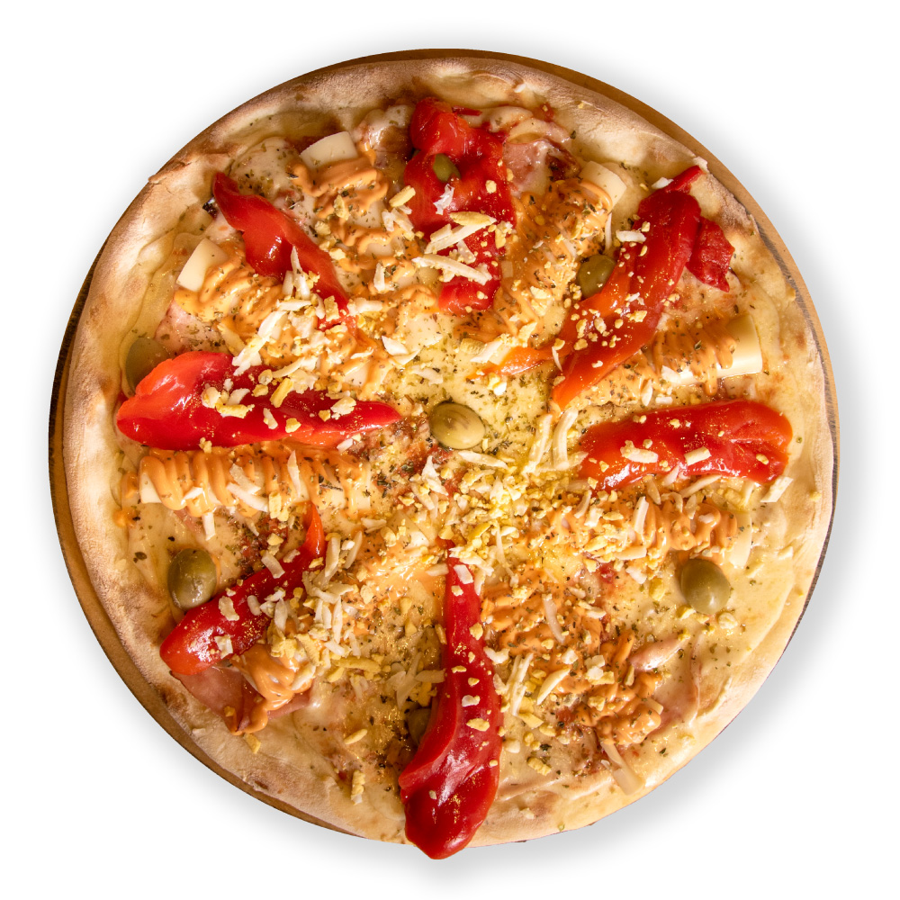 Salsa de tomate, muzzarella, j. cocido, palmitos, morrones y huevos duros. Las pizzas más ricas hechas con productos de primera calidad y con preparación artesanal. Elegí la cantidad y el tamaño que quieras y sumalas al carrito.